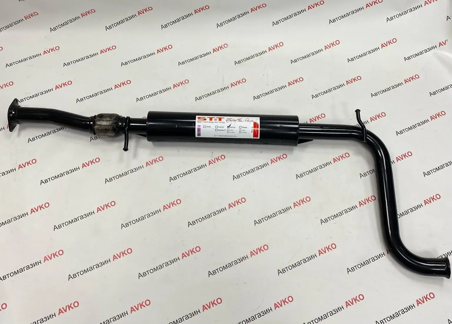 Резонатор прямоточный Stt-performance, с гофрой (виброкомпенсатором) Подходит на а/м ВАЗ: 1117, 1118, 1119 / Lada Kalina Материал изготовления: Сталь 08ПС Окраска: порошковая окраска, цвет черный Диаметр трубы: 51 мм Размер бочки: 470 х 100 мм Устанавливается без доработок с выпускным коллектором Stt-performance «4-2-1» для соответствующей модели а/м. НЕ ПОДХОДИТ к штатным кат.коллекторам и вставкам замены катализатора. Не подходит к глушителям Lada Kalina/Granta SPORT (из-за особенности крепления штатного глушителя Lada Sport)